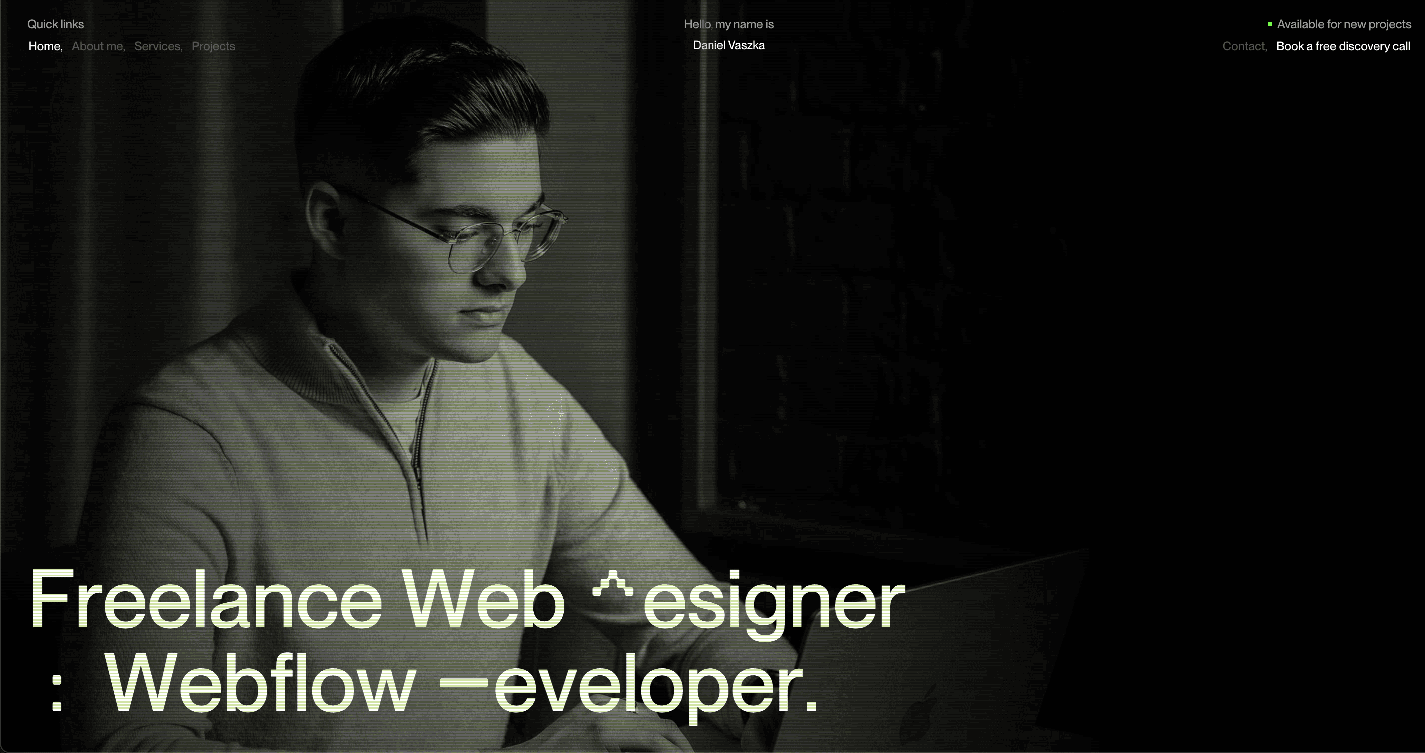 Daniel Vaszka’s portfolio is a sleek and professional showcase of his freelance design work. The site features a clean layout, bold typography, and a focus on user experience.