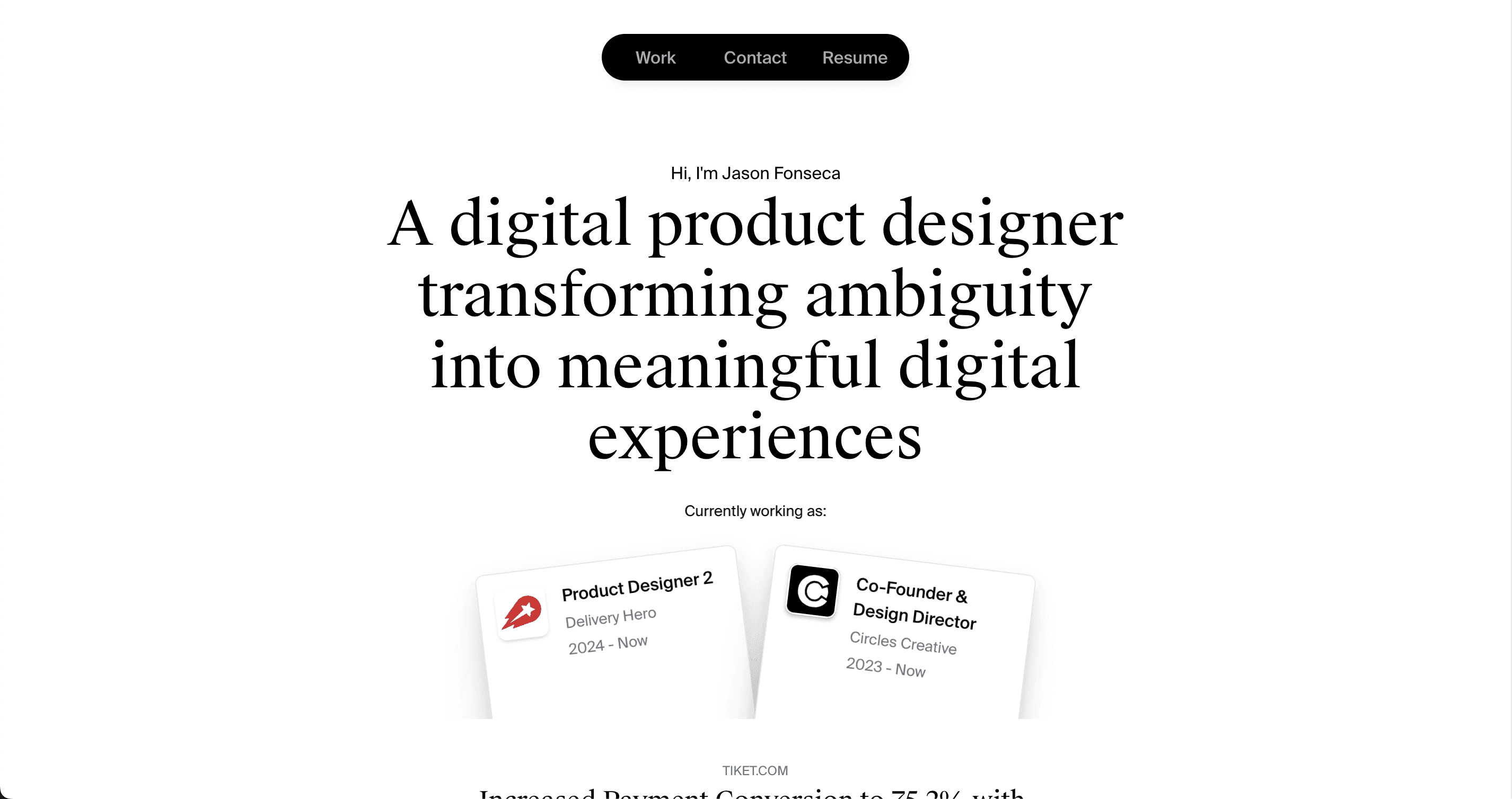 Francesco Fagioli’s portfolio is a professional and polished showcase of his senior product design work. The site features a clean layout, detailed case studies, and a focus on user-centered design.