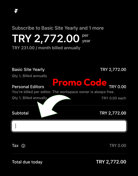 Note: If billing information was already added to your account, the promo code field may not appear.