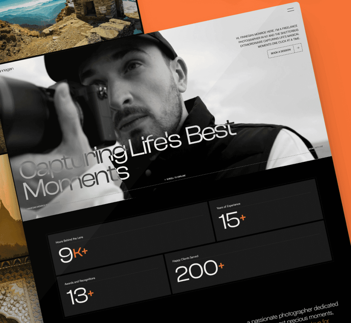 Photographers features a visually rich portfolio layout that highlights photography projects with striking imagery and clear organization. The design uses large visuals, clean section breaks, and thoughtful spacing to showcase curated shots and creative work effectively, creating a compelling visual narrative for each featured artist.