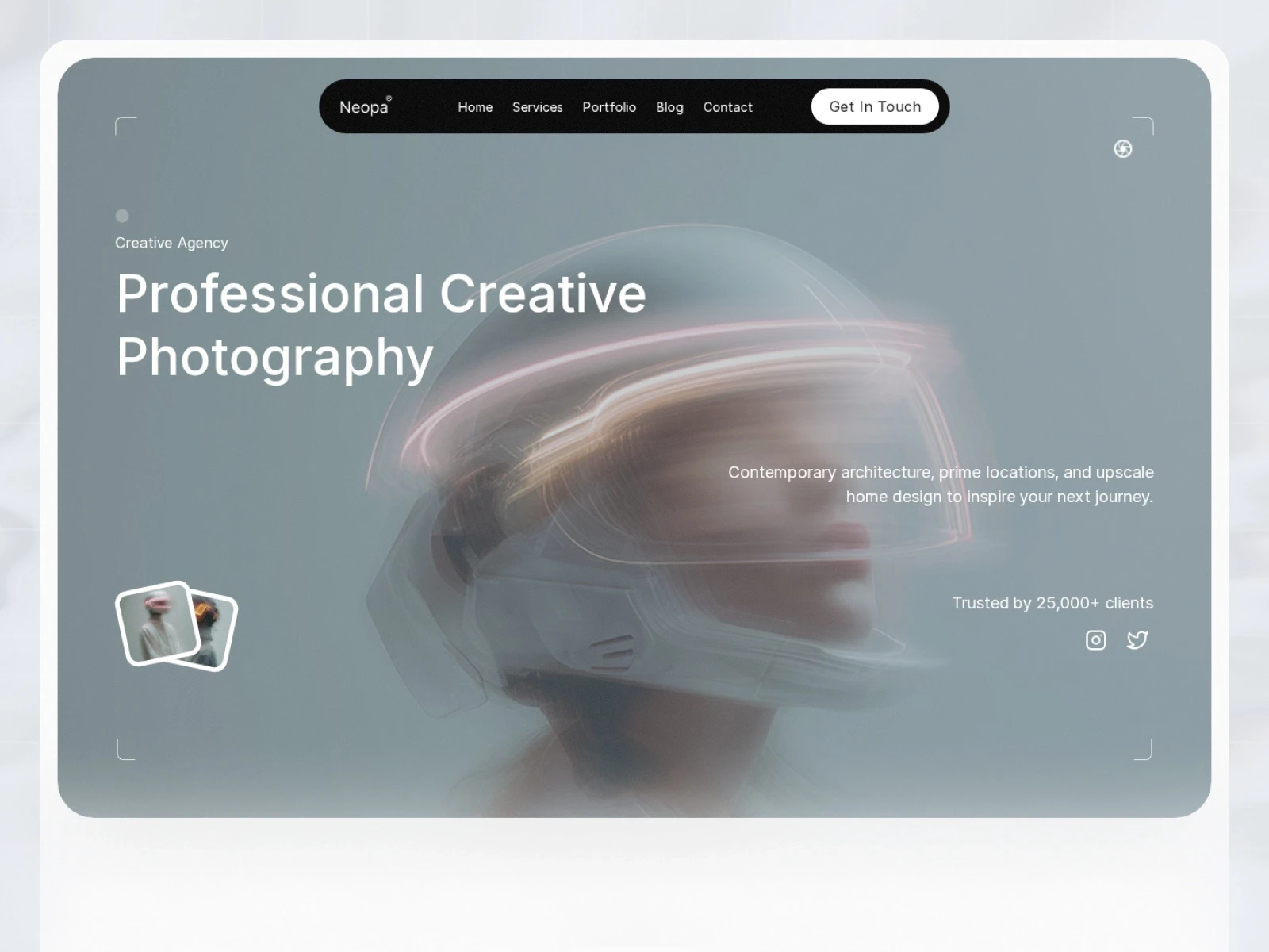 Neopa features a clean and visually bold art portfolio layout that highlights creative work with strong imagery and structured content. The design uses striking visuals, balanced spacing, and refined typography to present artistic projects with clarity and impact. Intuitive navigation and a polished aesthetic create a compelling visual showcase.
