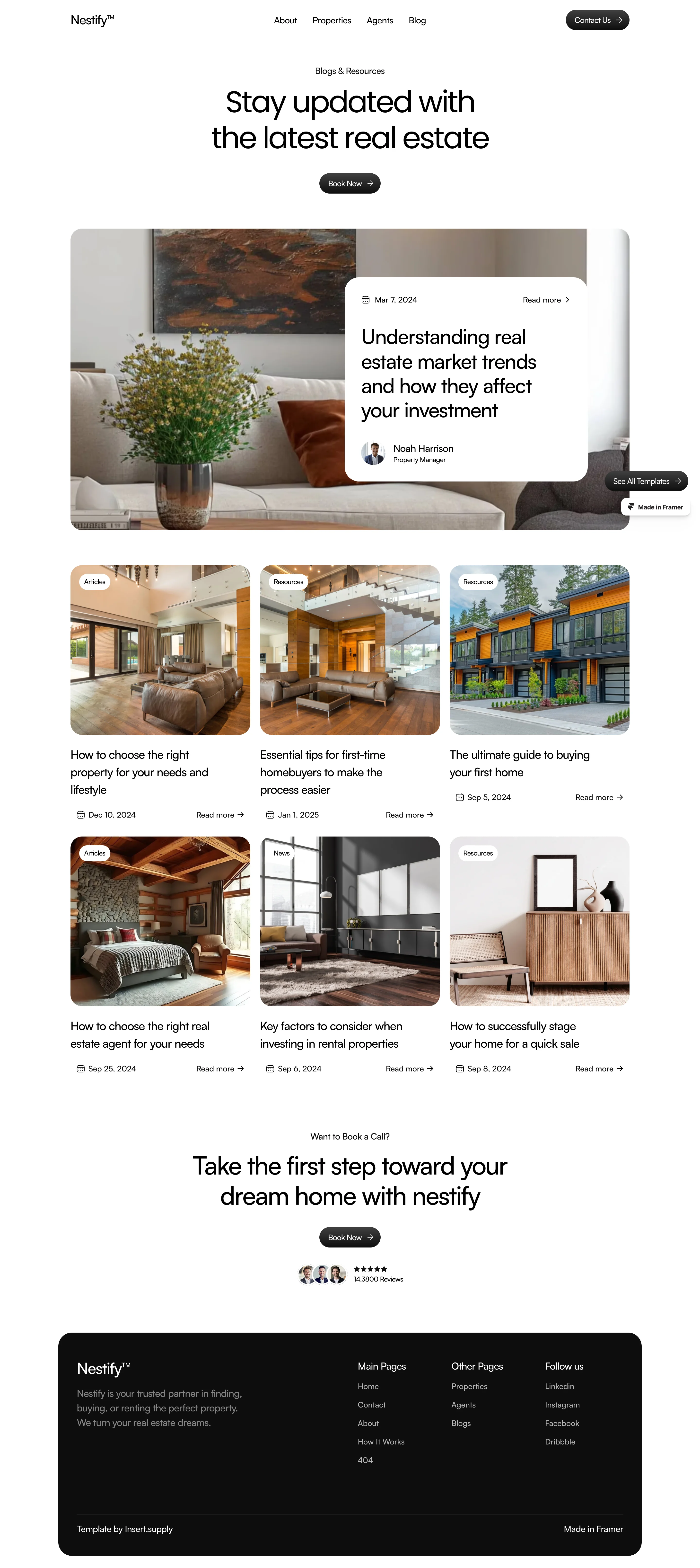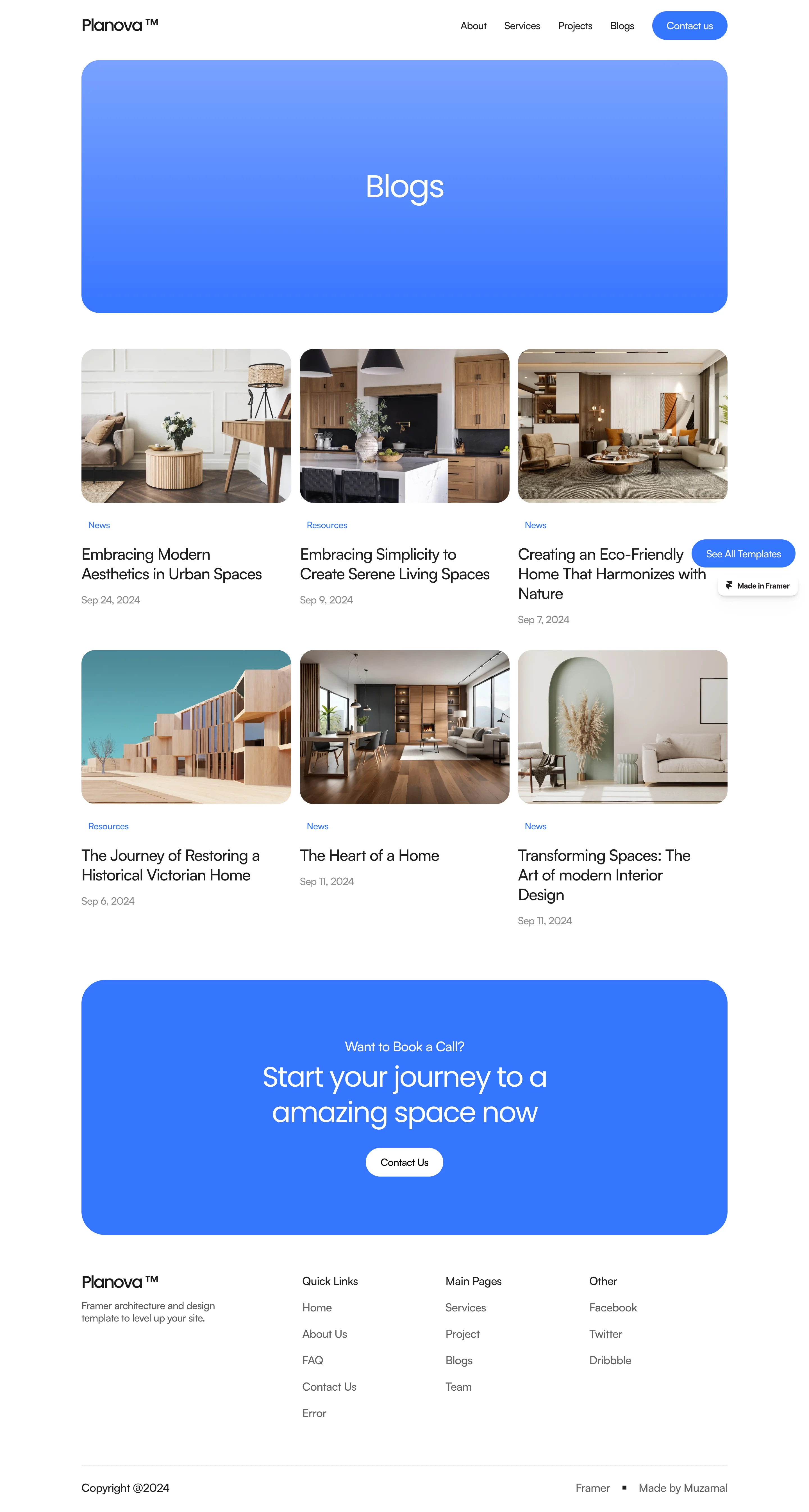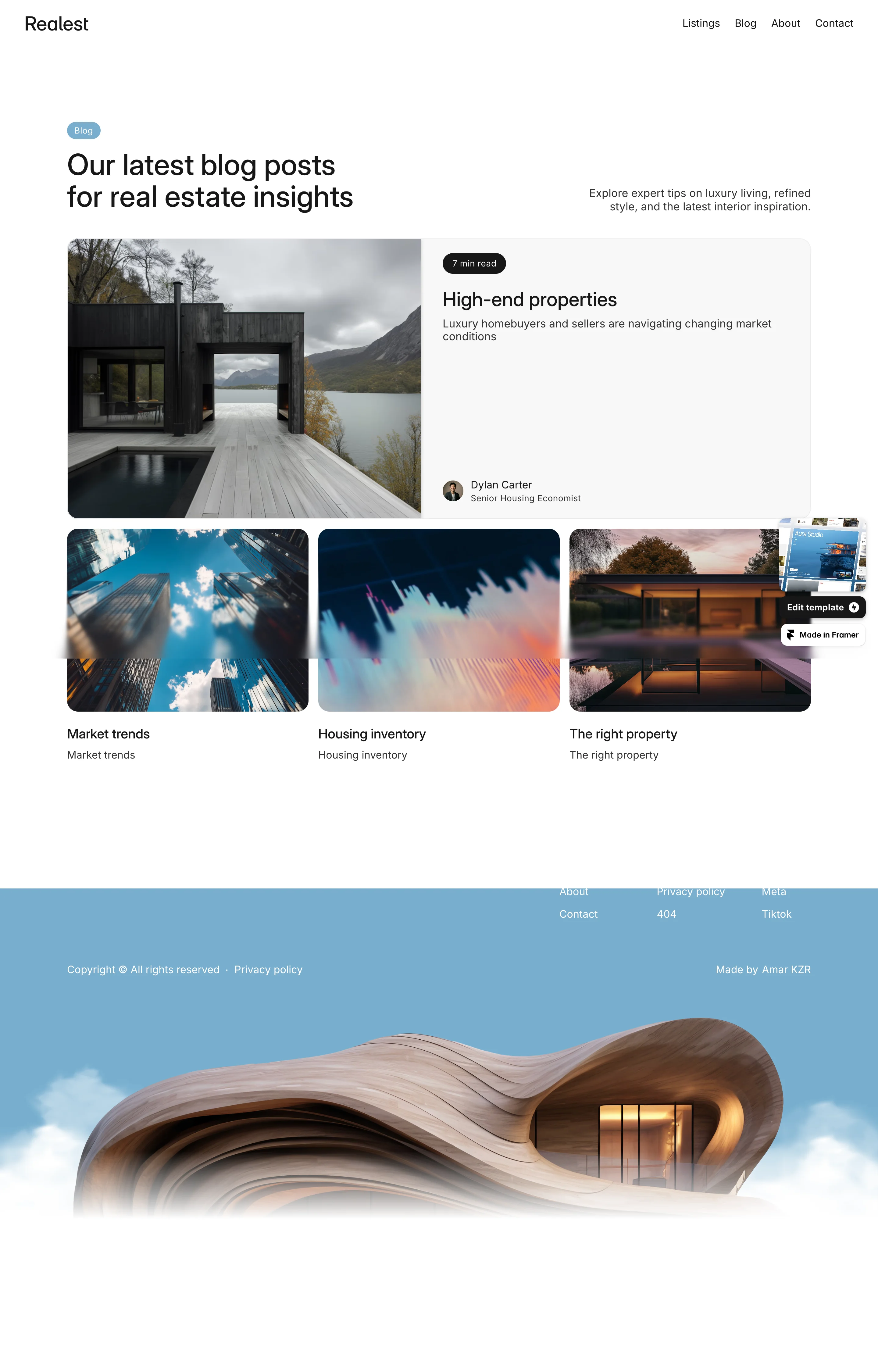 Discover the best free blog page templates and examples to publish content and grow an audience online. These free Framer templates are fully customizable and ideal for personal blogs, company blogs, startup blogs, SaaS blogs, creator blogs, and content-focused websites. Whether you’re building a blog homepage, article layout, editorial blog, knowledge base, or content hub, this curated collection of blog page templates and examples helps you create a readable, well-structured blog that supports SEO, content discovery, and long-term growth.