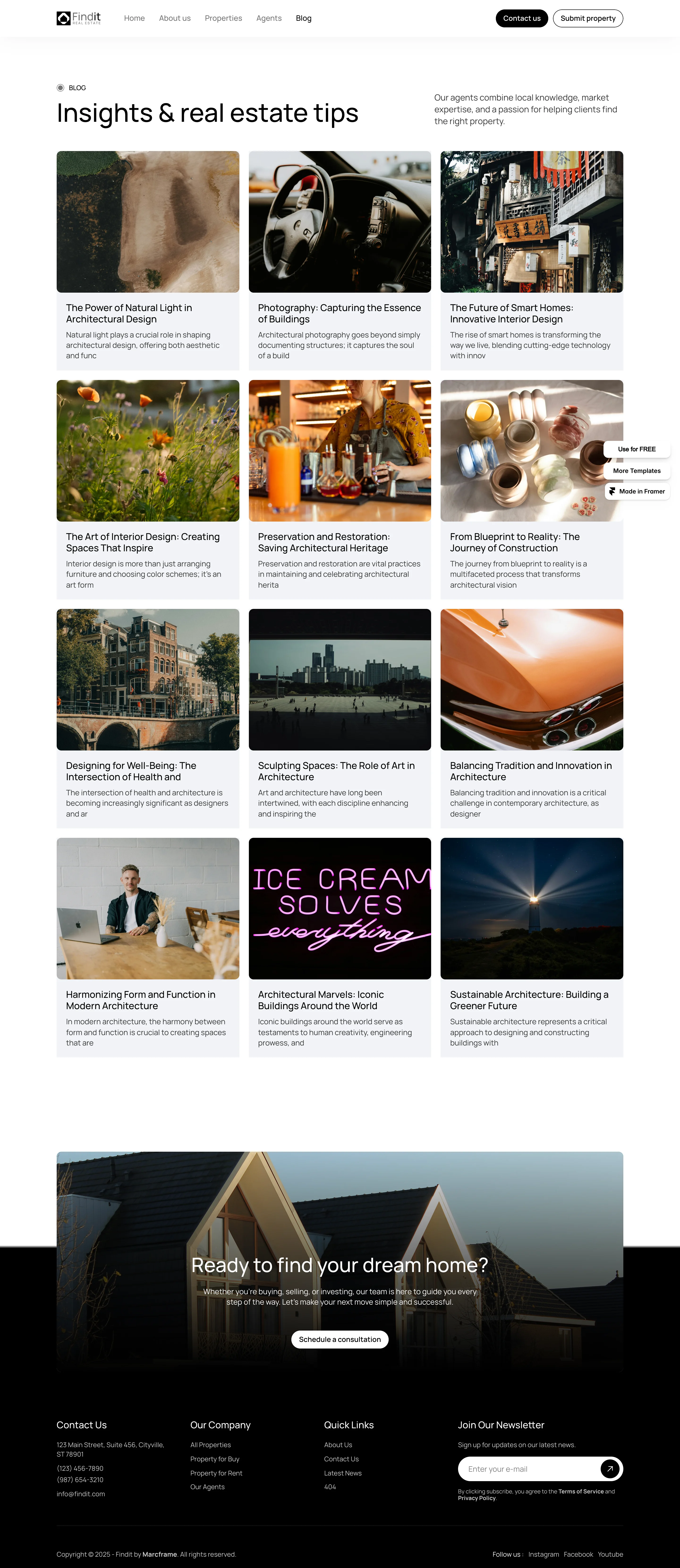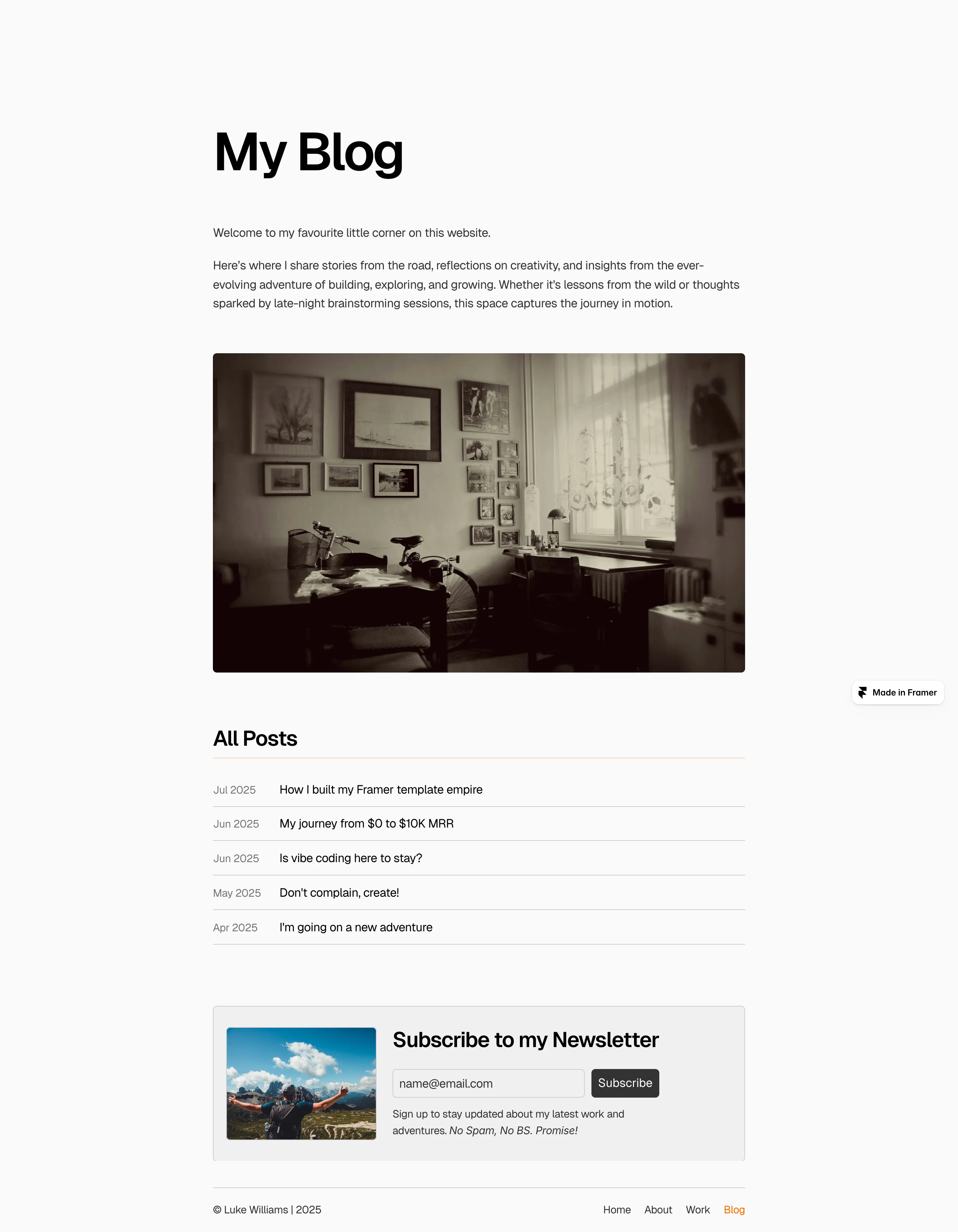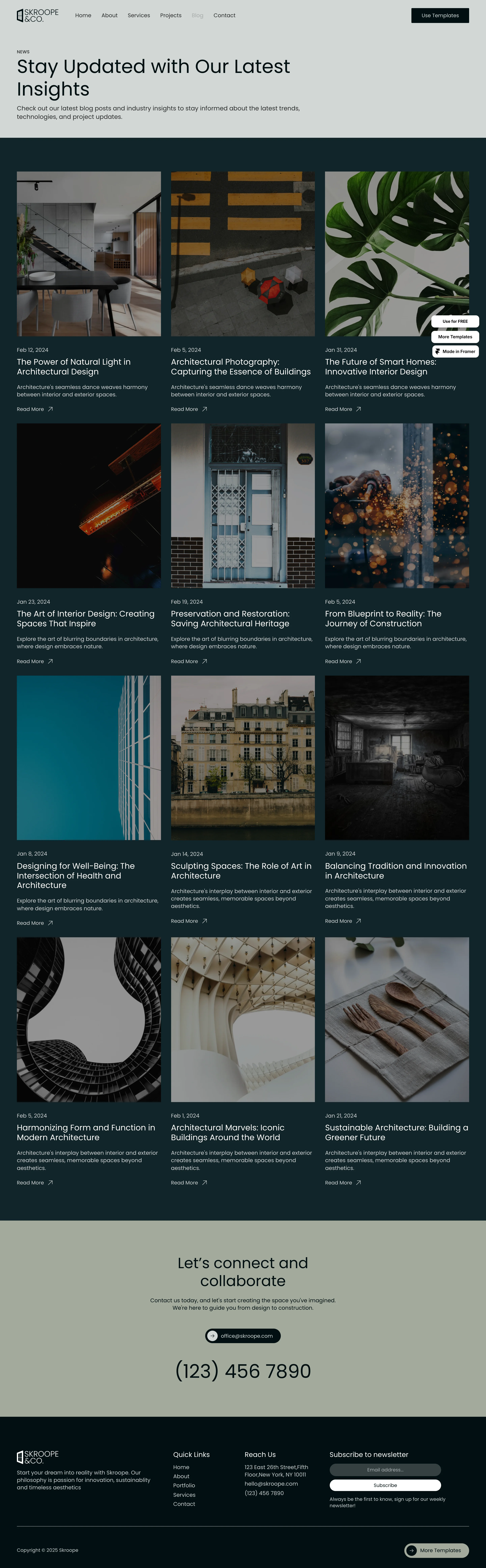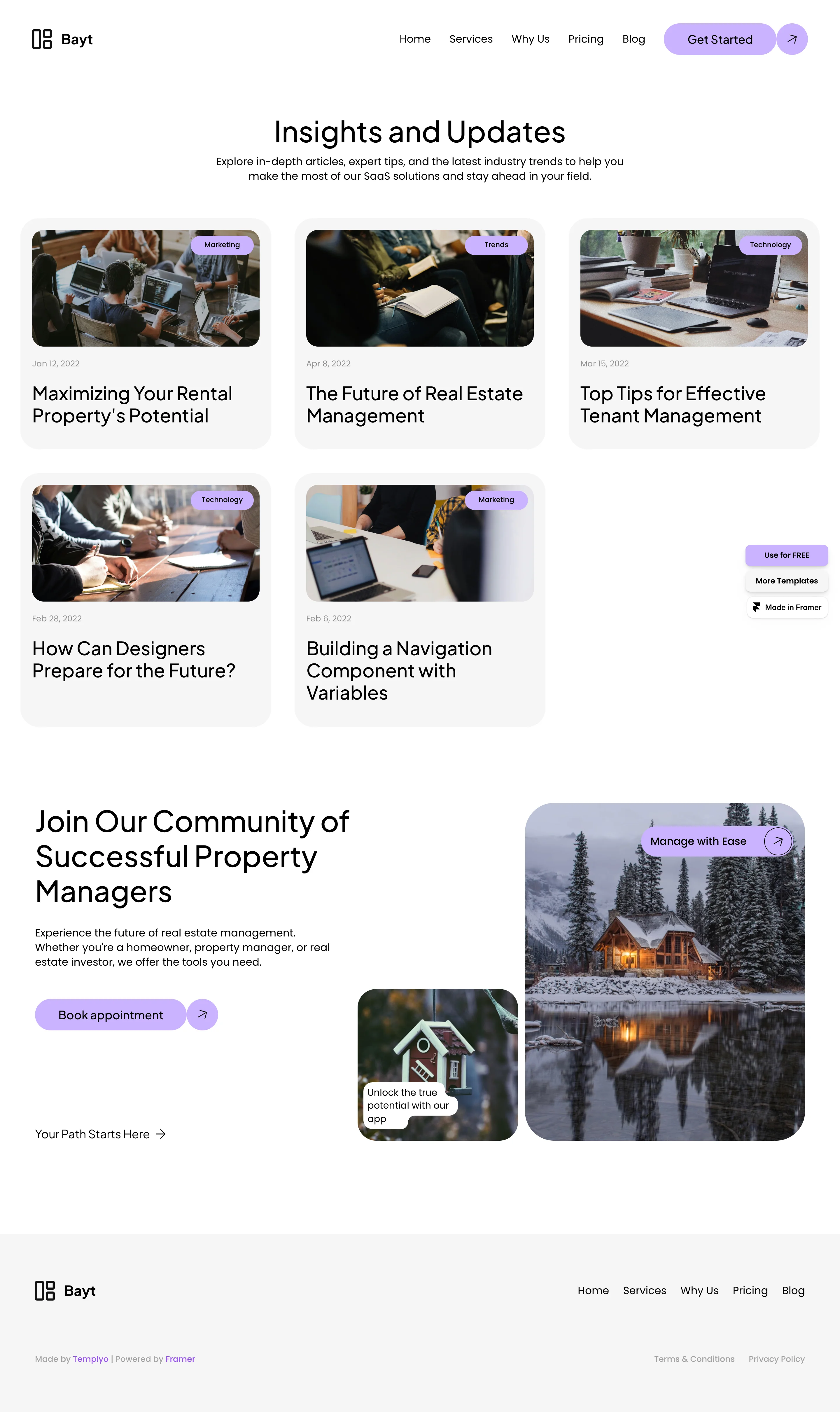 Discover the best free blog page templates and examples to publish content and grow an audience online. These free Framer templates are fully customizable and ideal for personal blogs, company blogs, startup blogs, SaaS blogs, creator blogs, and content-focused websites. Whether you’re building a blog homepage, article layout, editorial blog, knowledge base, or content hub, this curated collection of blog page templates and examples helps you create a readable, well-structured blog that supports SEO, content discovery, and long-term growth.