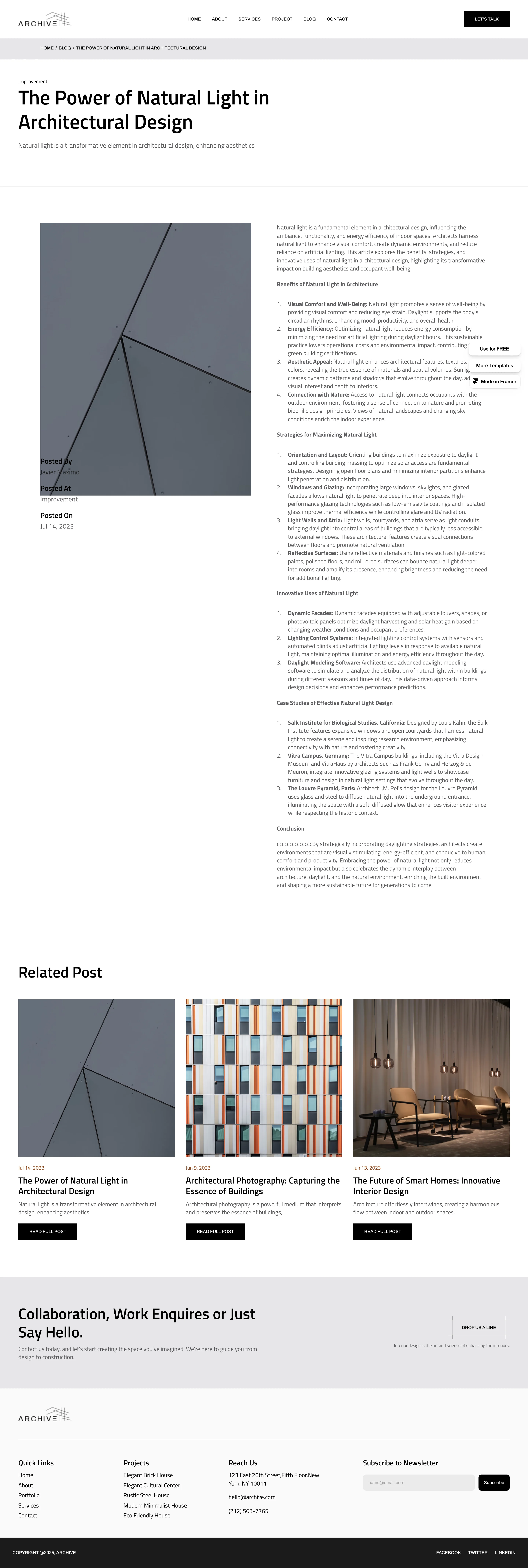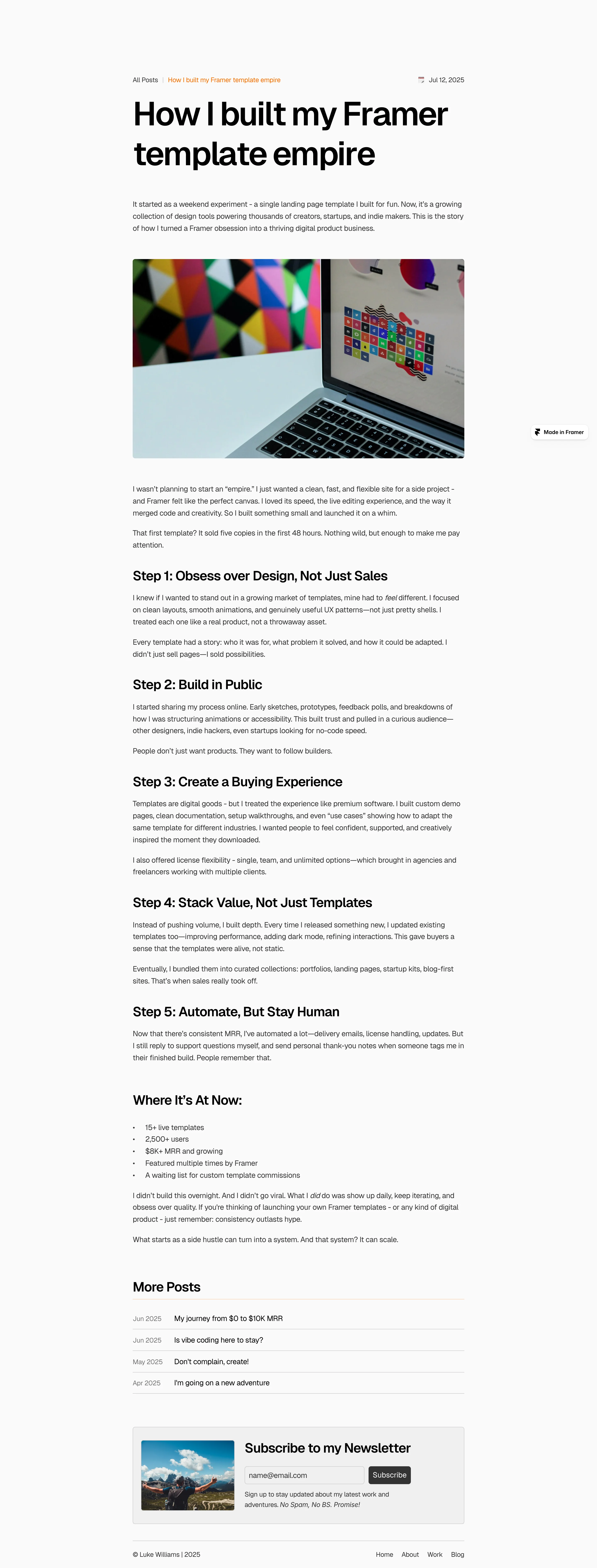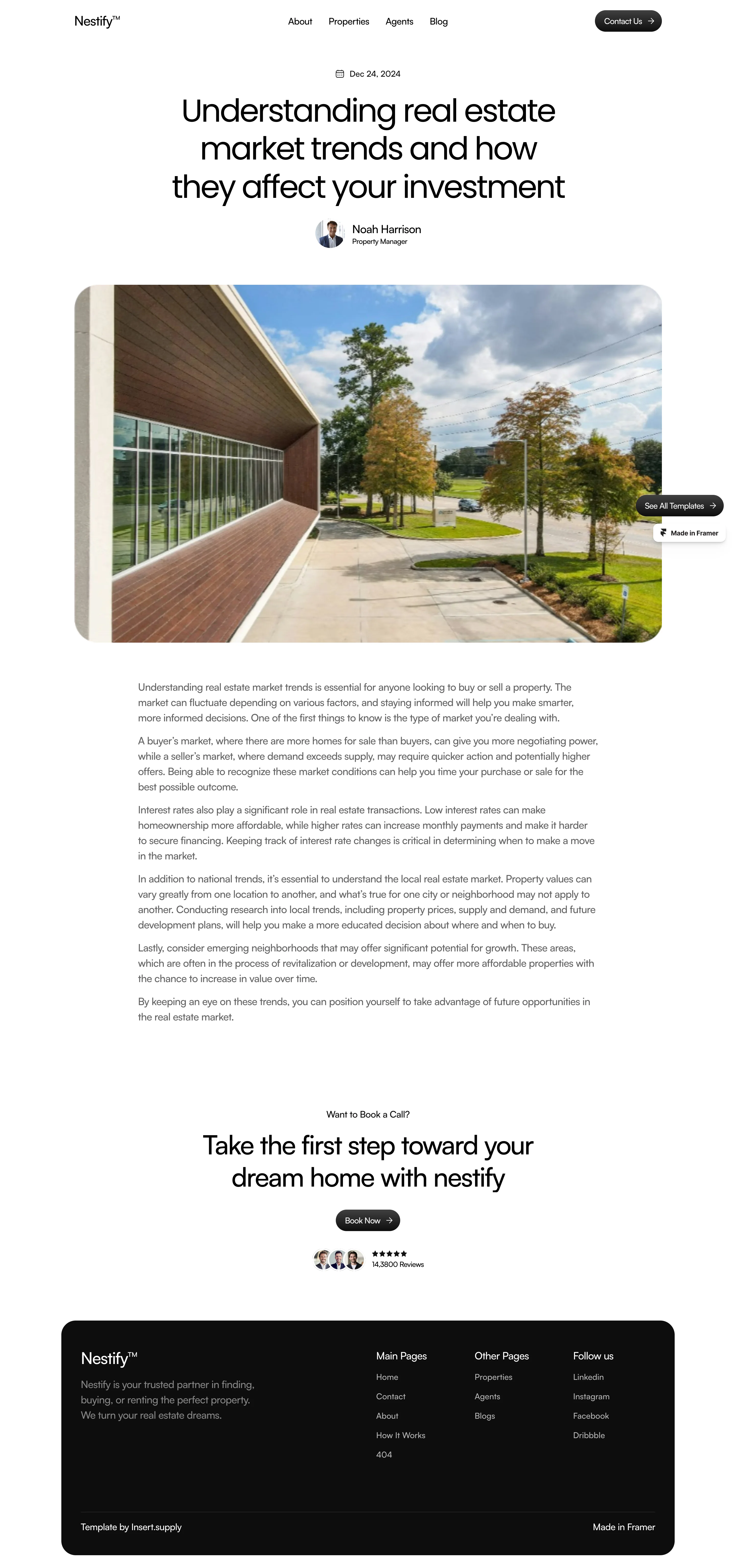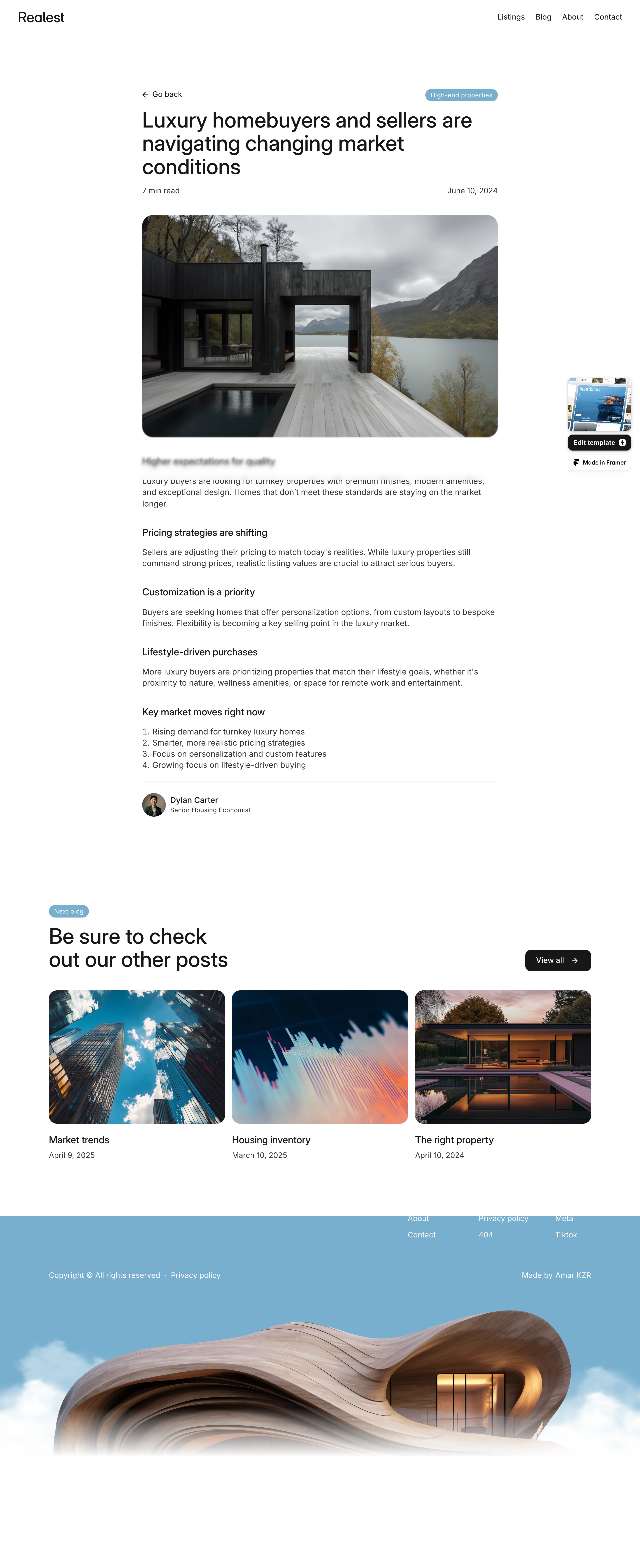 Discover the best free blog post page templates and examples to design individual blog articles and content pages. These free Framer templates are fully customizable and ideal for bloggers, writers, startups, SaaS companies, creators, and content-focused websites. Whether you’re publishing long-form blog posts, tutorials, guides, case studies, news articles, or editorial content, this curated collection of blog post page templates and examples helps you create readable, well-structured pages that improve SEO, engagement, and content clarity.
