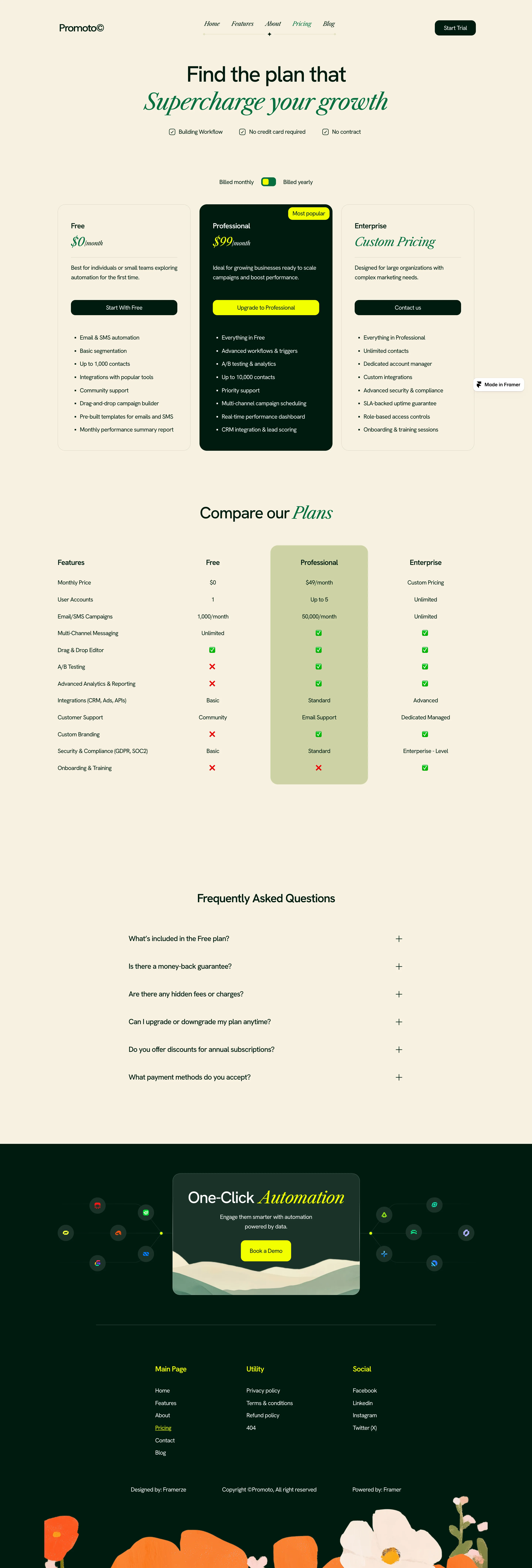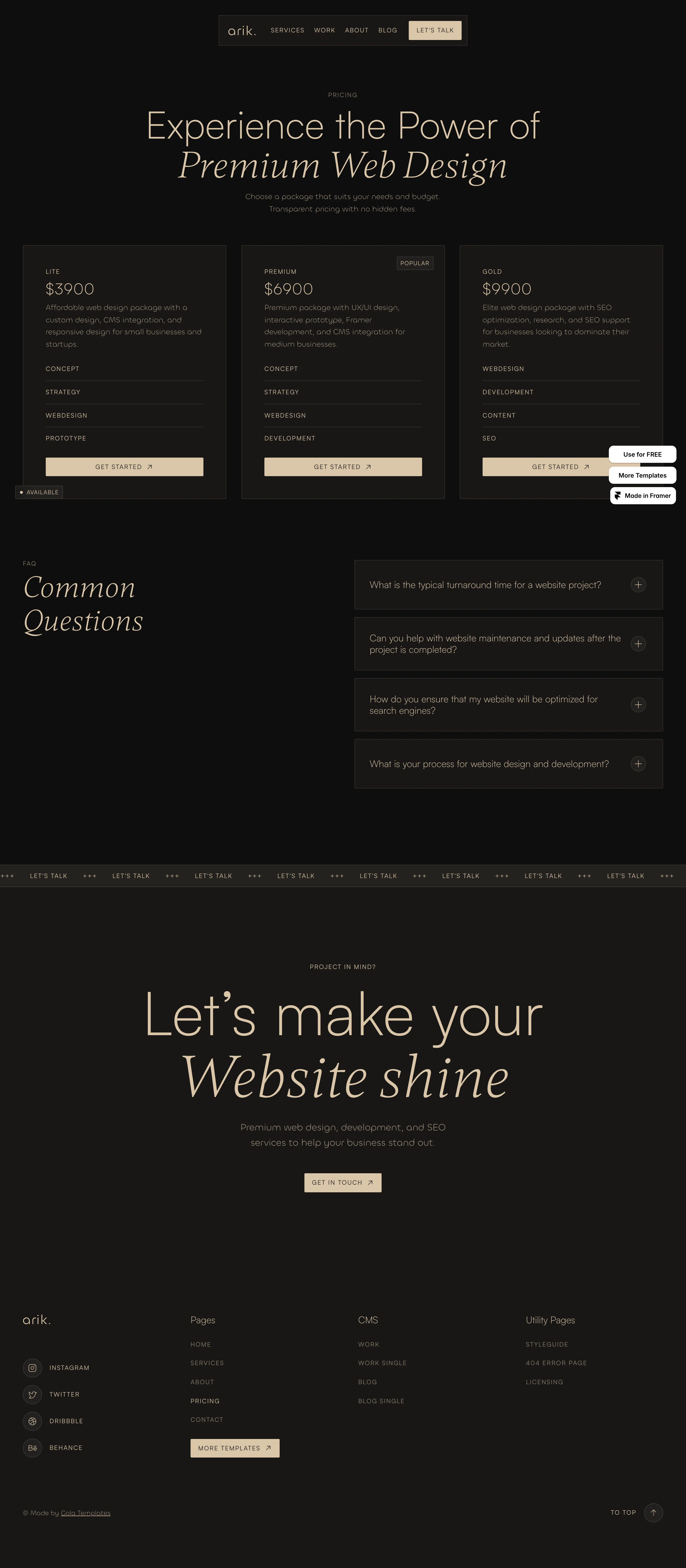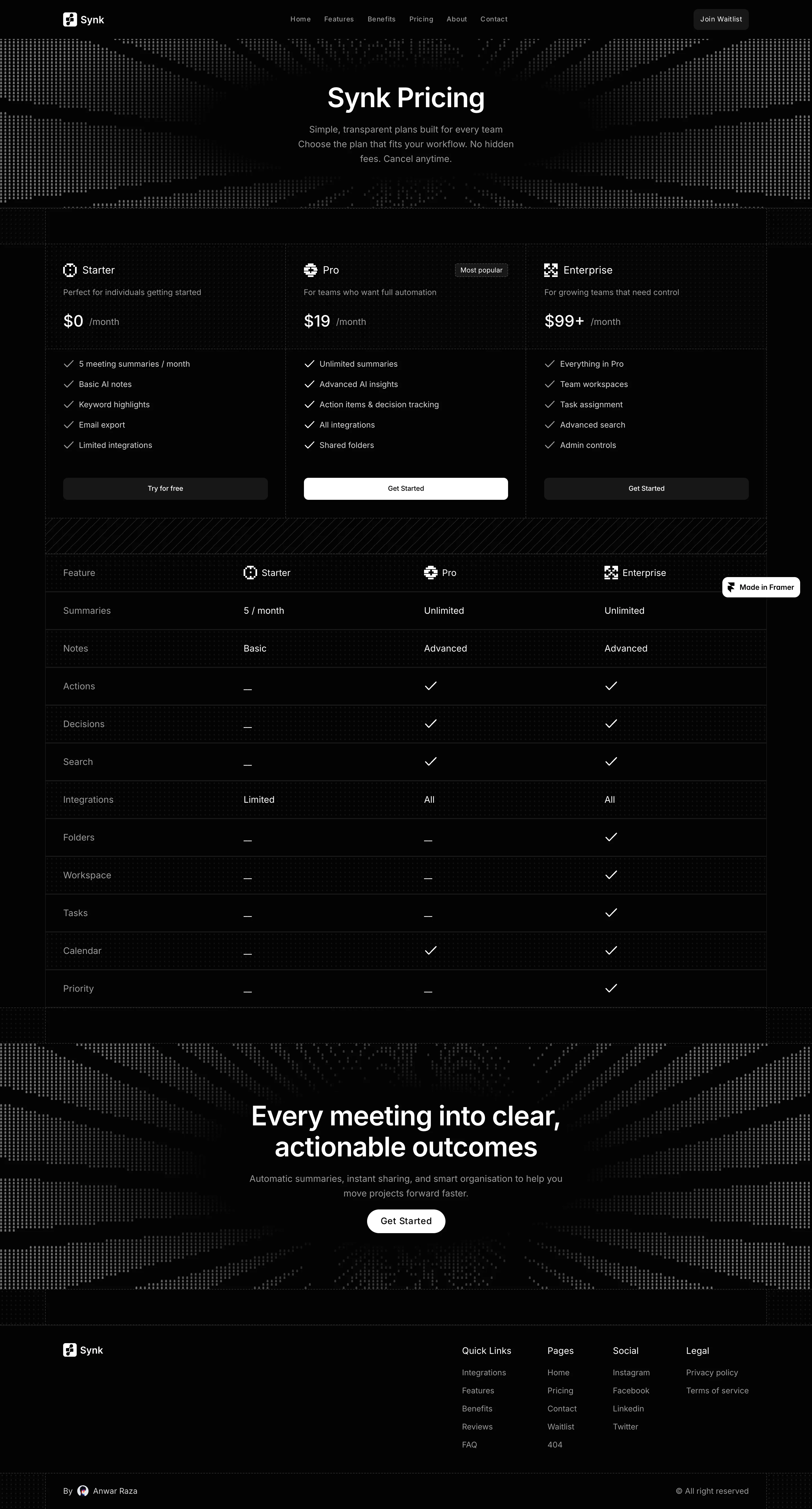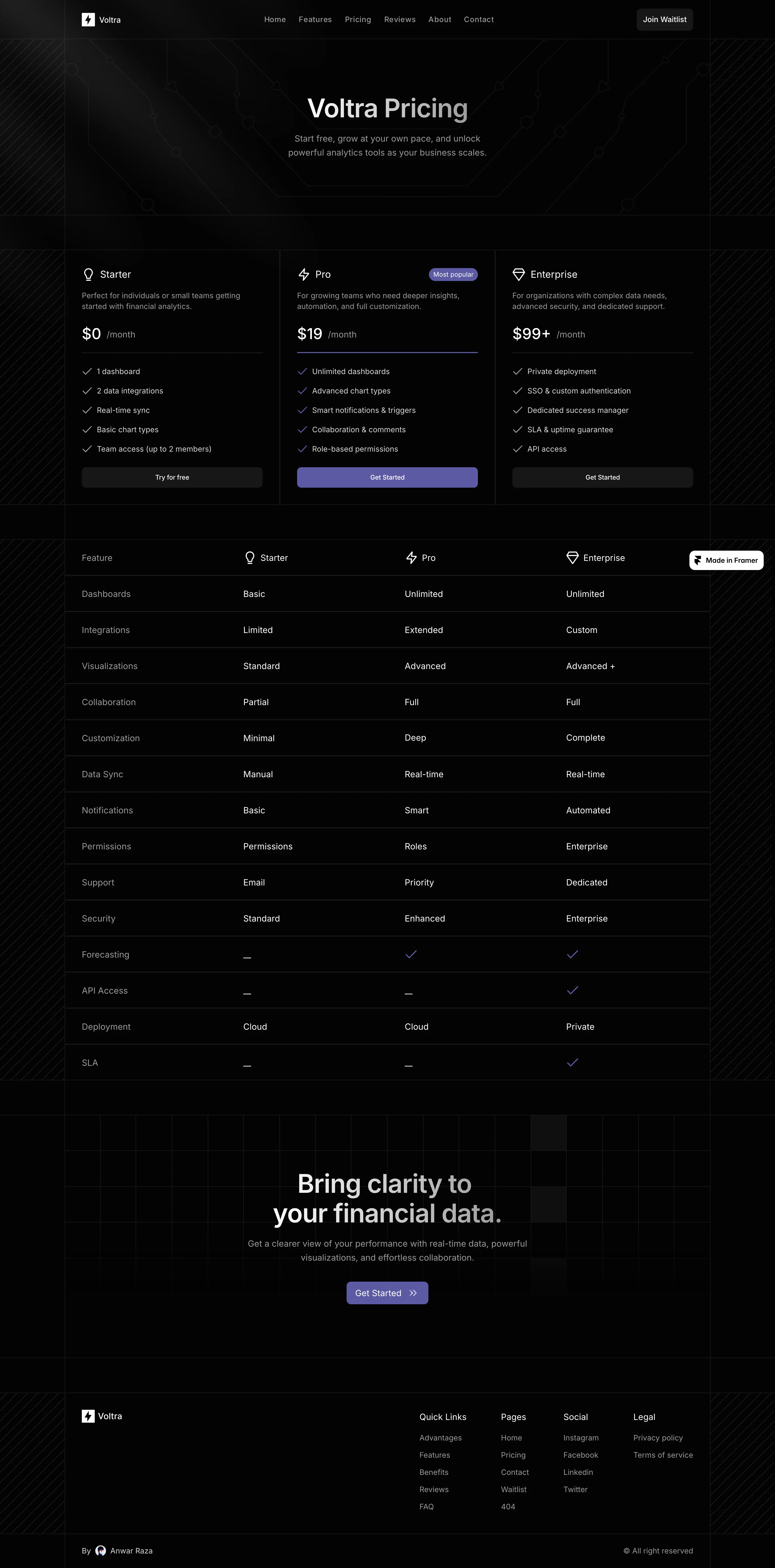 Discover the best free pricing page templates and examples to clearly present products, services, and subscription plans online. These free Framer templates are fully customizable and ideal for SaaS products, startups, agencies, freelancers, creators, and online businesses. Whether you’re designing SaaS pricing pages, service pricing pages, subscription plans, one-time pricing layouts, or comparison tables, this curated collection helps you create transparent, conversion-focused pricing pages that build trust and drive sign-ups.