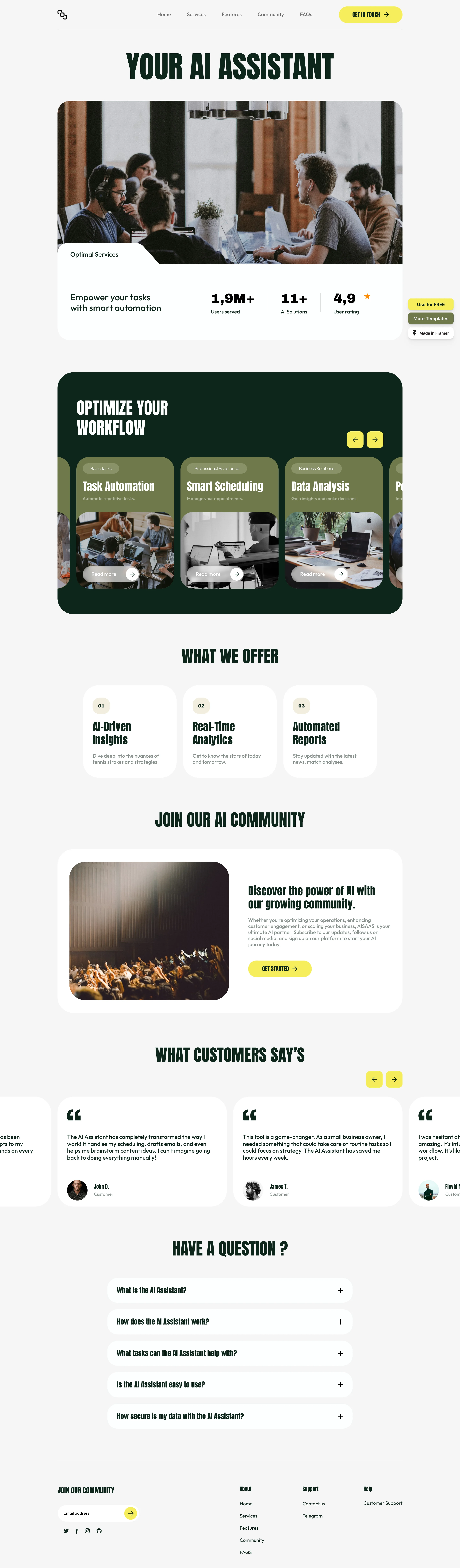 All templates in this directory are free business website templates built with Framer, fully customizable and designed to help businesses launch professional websites quickly.