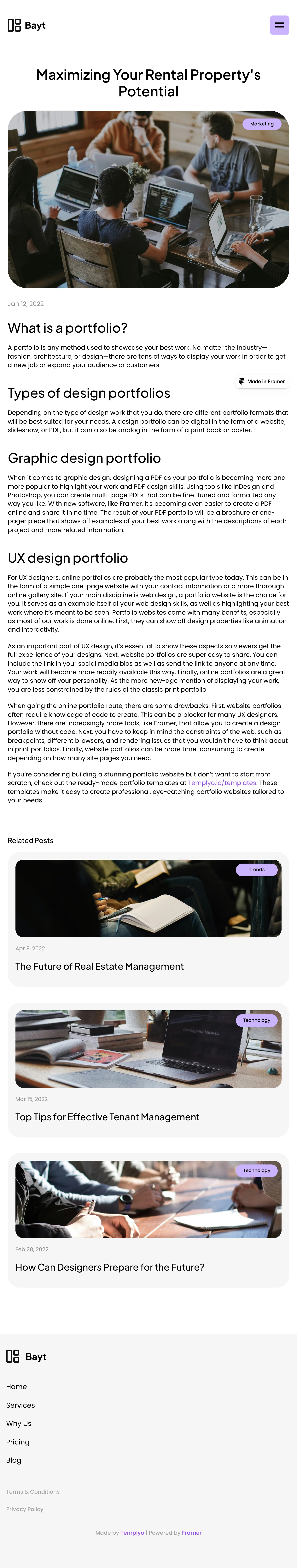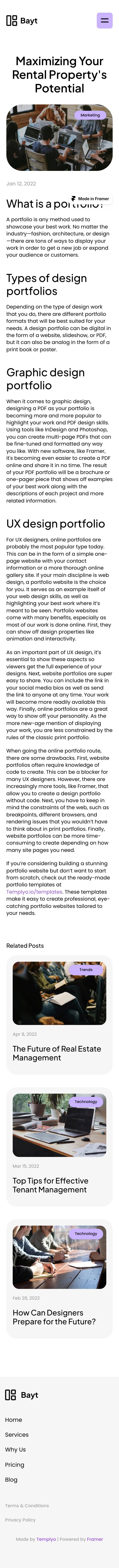 The Bayt blog post on maximizing rental property potential boasts a clean, modern layout that emphasizes readability and user engagement. Rich visuals complement well-organized content sections, while intuitive navigation enhances the user experience.