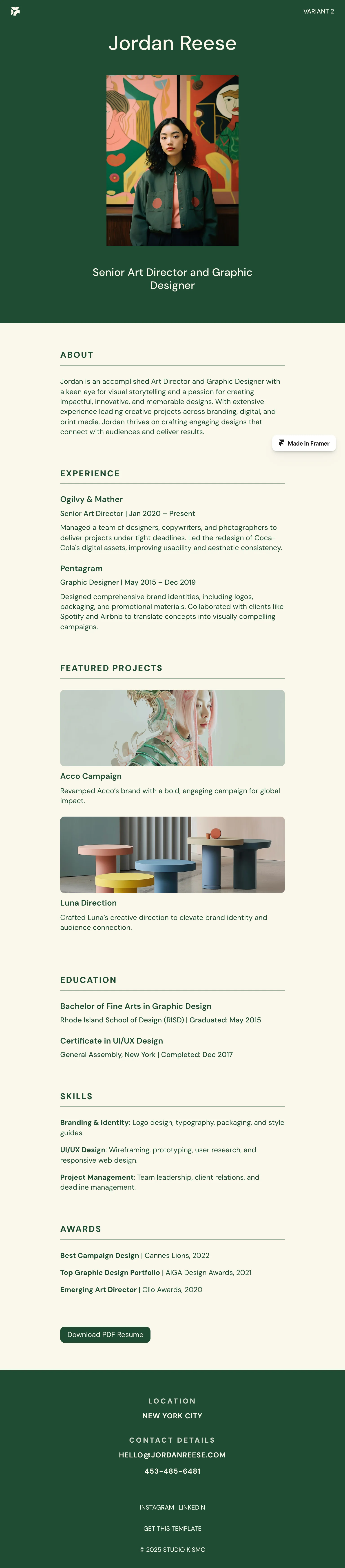 The Civio homepage features a clean, modern design that elegantly showcases Jordan Reese’s portfolio as an Art Director and Graphic Designer. With a balanced layout, ample white space, and striking typography, it highlights his expertise across diverse projects.