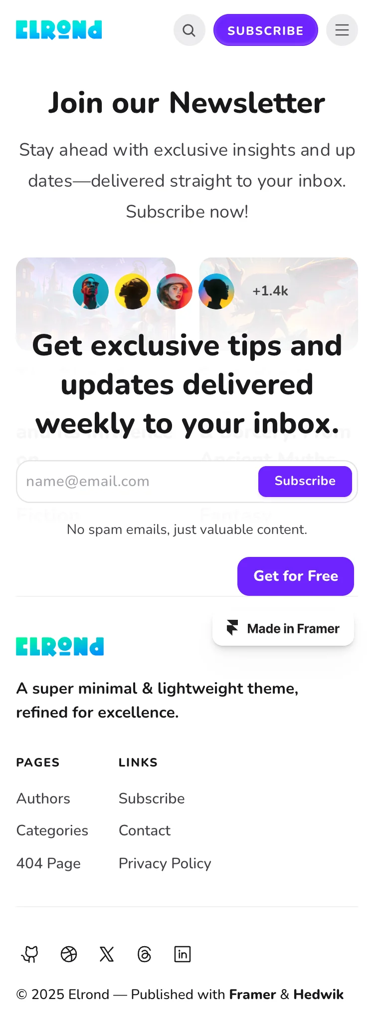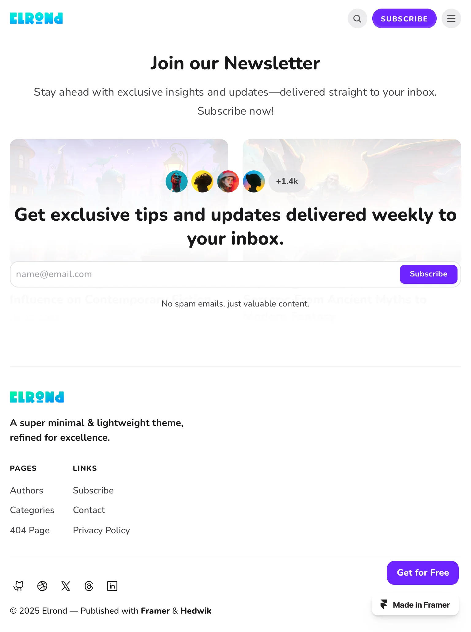 The Elrond pricing page showcases a sleek, minimalistic design that emphasizes functionality and clarity. With a clean layout and subtle typography, it invites users to subscribe without distractions. The use of whitespace enhances readability, while the vibrant call-to-action buttons draw attention