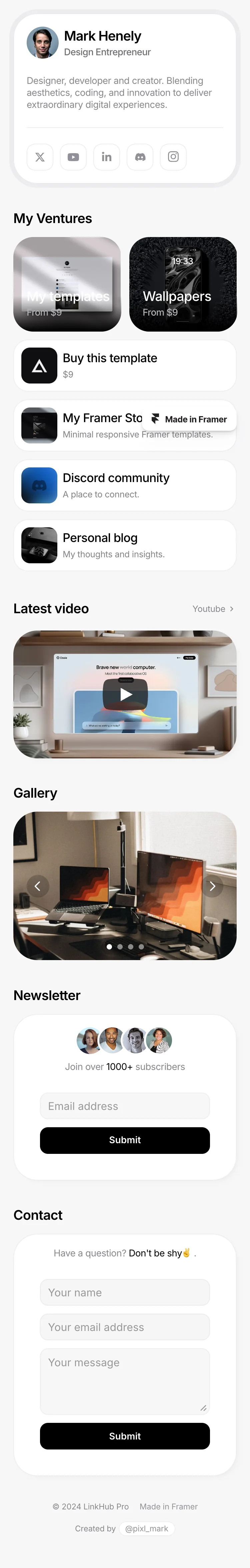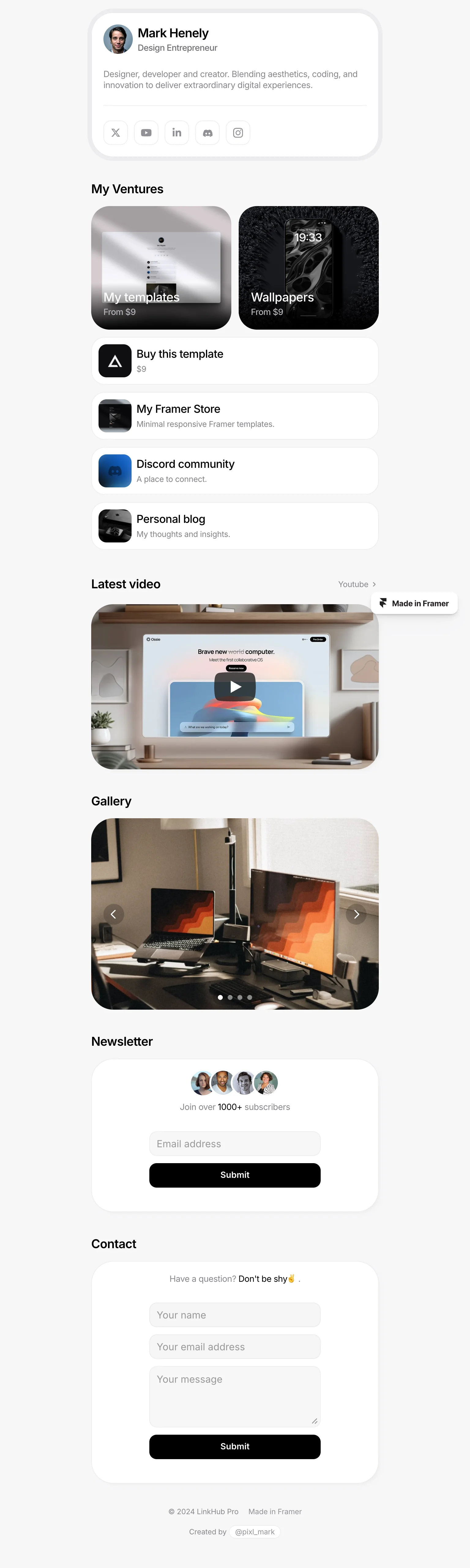 LinkHub Pro's homepage showcases a sleek, modern design with a minimalist aesthetic, emphasizing usability and visual clarity. The layout features distinct sections for templates, wallpapers, and community engagement, seamlessly guiding users through the offerings.