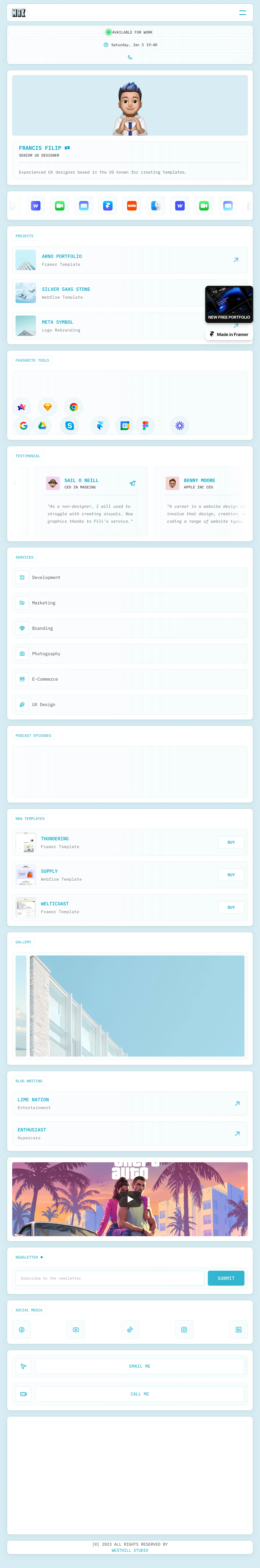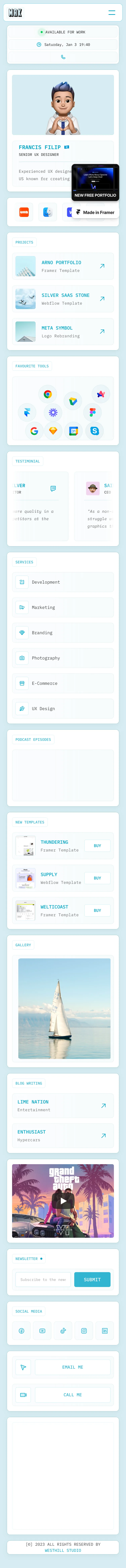 The Makinto homepage presents a sleek and modern design, emphasizing an intuitive layout that highlights Francis Filip's UX design expertise. With a harmonious color palette and clean typography, the site features easily navigable sections for projects, testimonials, and services.