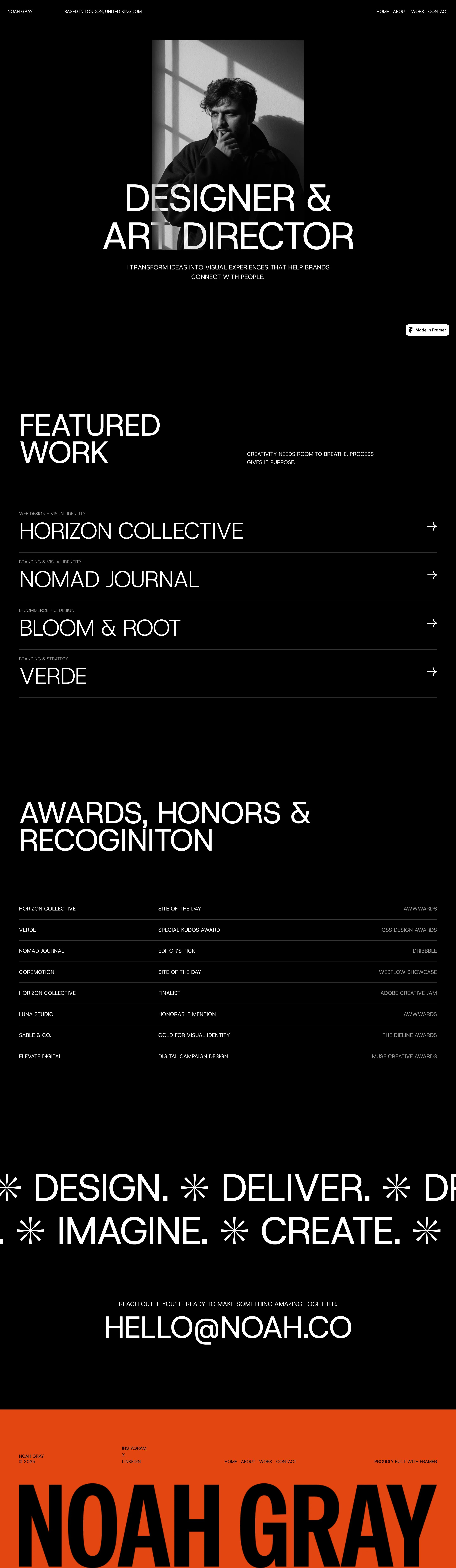 The homepage of Noah Gray expertly blends modern aesthetics with functionality, featuring a minimalistic layout that emphasizes visual storytelling. Bold typography and ample white space enhance readability, while a rich palette of colors adds vibrancy.