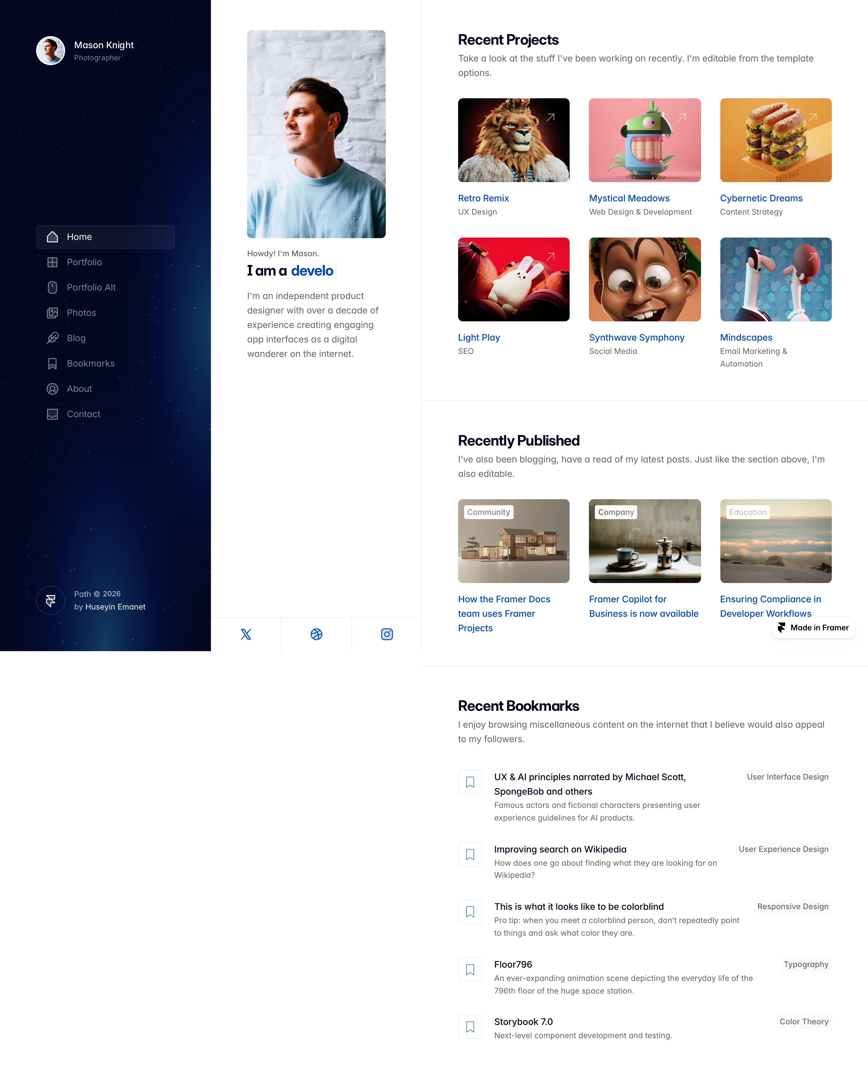 The homepage of Path features a sleek and modern layout that emphasizes Mason Knight's portfolio as an independent product designer. With a minimalist aesthetic, the design utilizes ample white space, striking typography, and vibrant imagery to enhance visual appeal.