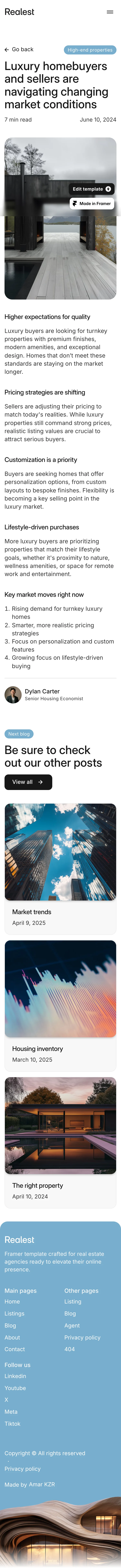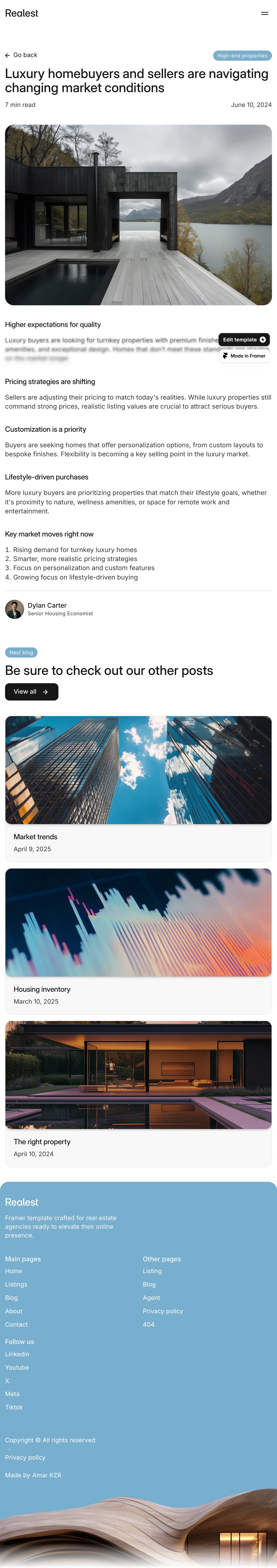 The Realest blog post on high-end properties features a sleek, modern layout that emphasizes readability and visual appeal. The use of crisp typography and ample white space enhances the user experience, while engaging images of luxury homes capture attention.